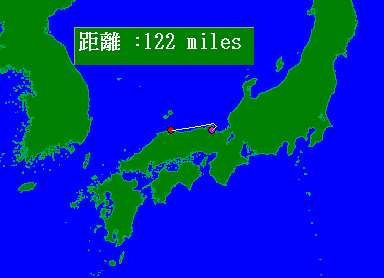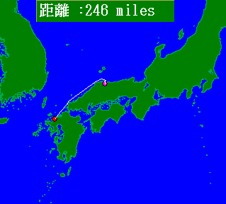日本海側から降りるとして、唐津から境港~米子海上の距離を計算すると232~246マイル(最大約455km)