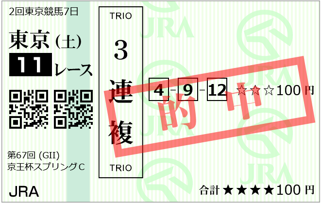 京王SC(スプリングカップ):G2:的中!!メイケイエールちゃん、お強い!