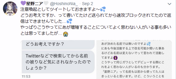 星野ニアだった同人作家さんが改名せざるを得ないの可哀想すぎるし、ブイチューバーの星野ニアがその人に対して「(改名してくれて)ありがとうございます!」って言ってんの怖すぎ