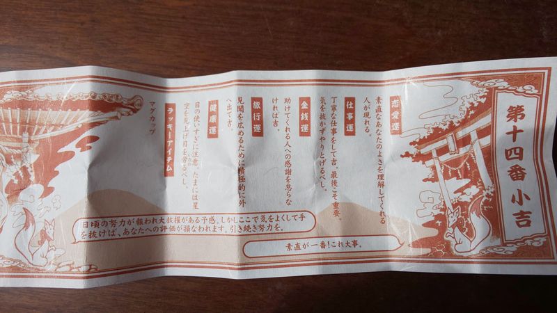 いつもの近くの神社で高齢の勝利祈願。ガチャガチャおみくじは小吉でした。