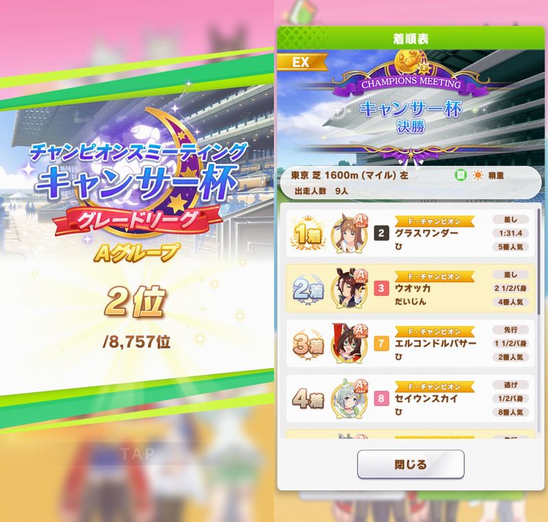 ゲーム「ウマ娘」のイベント「チャンピオンズミーティング」キャンサー杯。